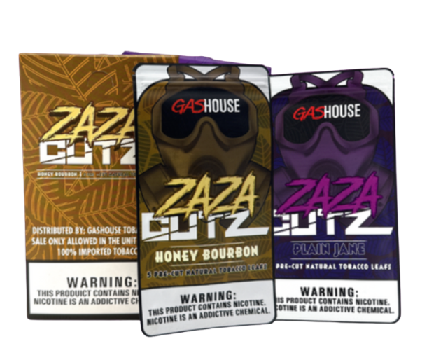 Gas House Zaza Cutz offers premium, pre-cut tobacco leafs designed for smooth rolling with zero prep. Each pack includes five ready-to-use wraps, trimmed for convenience and consistent performance. These fresh, flexible leafs provide a natural burn and are available in three flavorful options—Banana, Honey Bourbon, and Plain Jane—giving customers a choice that fits their preferred roll experience.